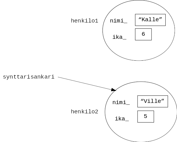 henkilo1 = Henkilo("Kalle", 6)